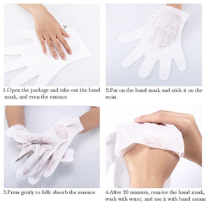 • Step 1: Open the package, take out the hand mask, and apply the essence evenly.