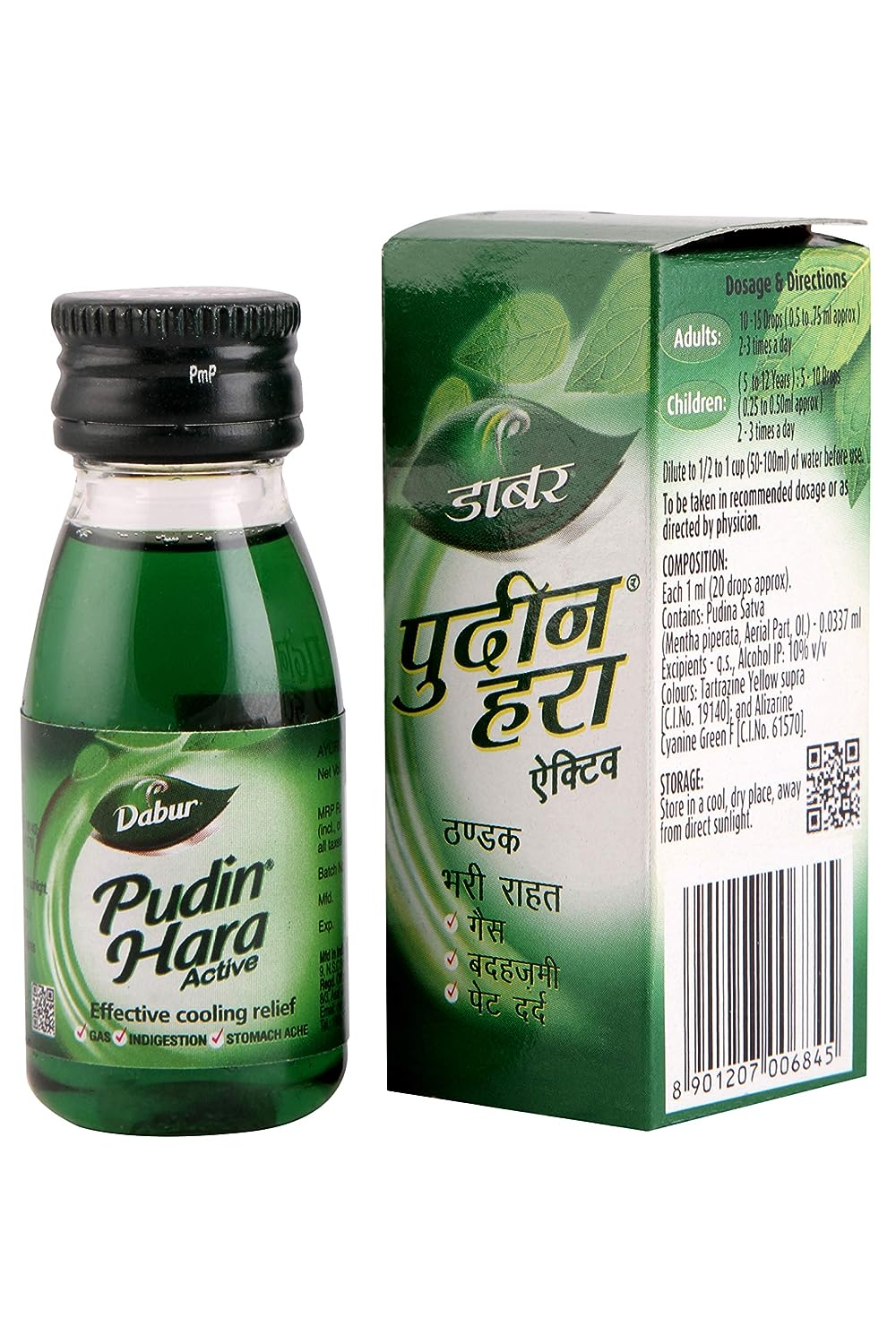 Dabur Pudina Hara Active is an ayurvedic medicine that contains ingredients that are recommended for indigestion, gas and flatulence.