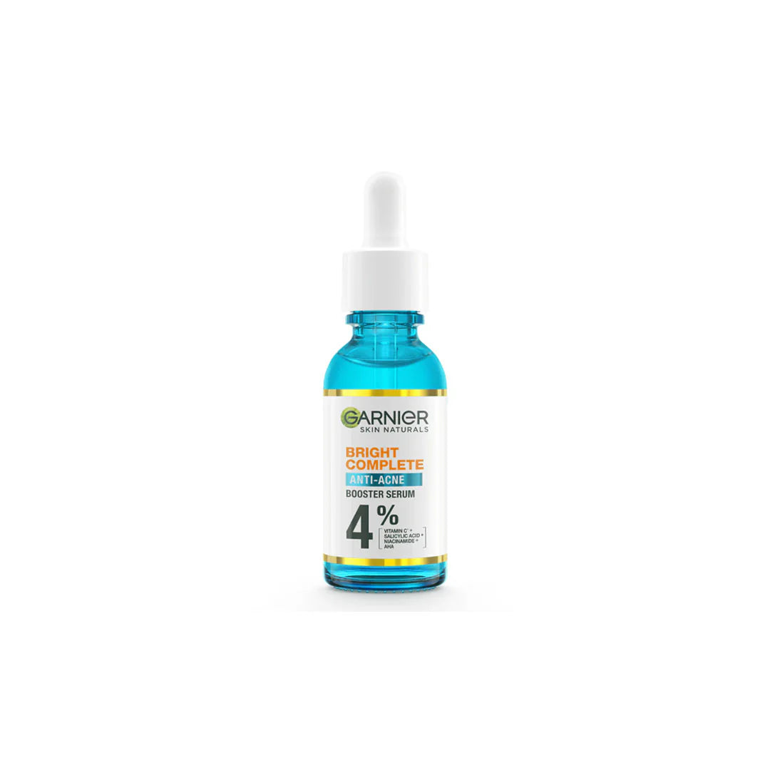 Get glowing skin with the Garnier Bright Complete Anti-Acne Serum. It's formulated with vitamin C, salicylic, niacinamide, and AHA to reduce acne and fade acne marks and dark spots. It leaves the face soothed, visibility brighter, and clear.