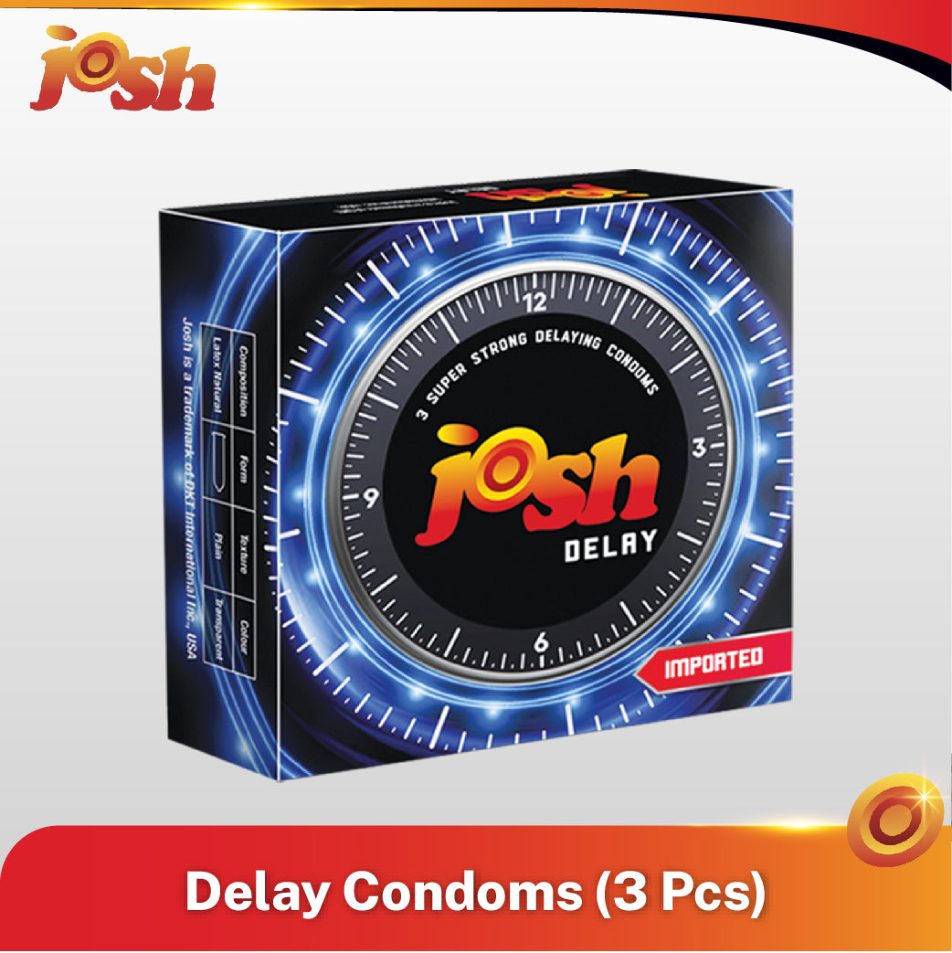 Josh Delay Condoms, made with natural rubber latex, are specially lubricated with delaying gel, resulting in long lasting joy for you and your partner.