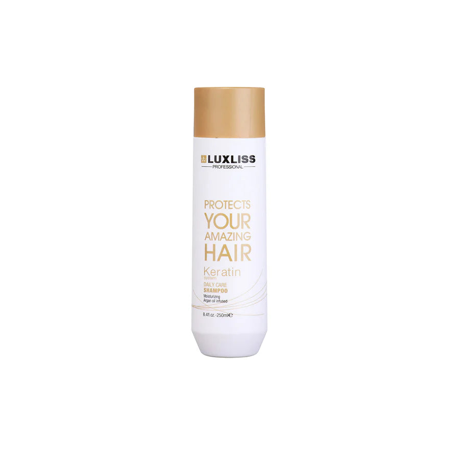 DIRECTIONS Apply onto wet hair and scalp. Massage into lather and rinse thoroughly, repeat if necessary. Then use LUXLISS KERATIN DAILY CARE CONDITIONER ANTI-FRIZZ LEAVES HAIR SHINE & SMOOTH NO BUILDING UP CONTAIN ARGAN OIL