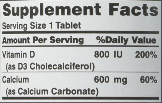 Calcium is the primary mineral responsible for strong bones and teeth. The body also uses Calcium for proper muscle contraction, nerve function and heart function. Vitamin D3 assists in maintaining a healthy immune system.Just two tablets of Calcium 600 with Vitamin D3 give you the supports of 120% of the Daily Value for Calcium.