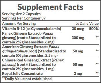 Ginseng contains naturally occurring ginsenosides and flavonoids. Nature’ s Bounty’s blend of Panax, American and Chinese Red Ginseng forms a unique supplement designed to support vitality and immune function with vitamin B-12 to help convert food into energy.*