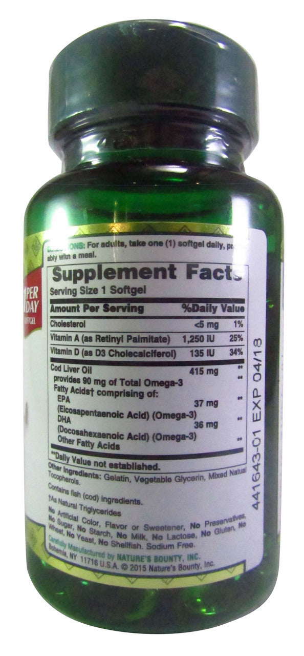 As a natural source of Vitamins A and D, Cod Liver Oil promotes strong bones and a healthy immune system. Just one easy-to-swallow softgel a day also contains Omega-3 fatty acids that contribute to overall wellness