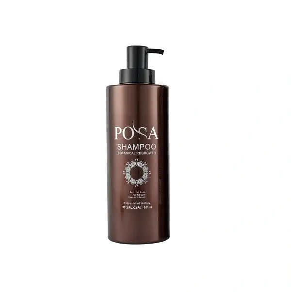 Posa Botanical Regrowth Shampoo A unique botanical infusion that promotes hair growth by effectively working against oil and sebum on the scalp. The protein-enriched formula helps restore hair keratin, strengthening individual hair strands, and thereby alleviating hair breakage. Bring life to your weak, dry dull and brittle hair without posing any damage.