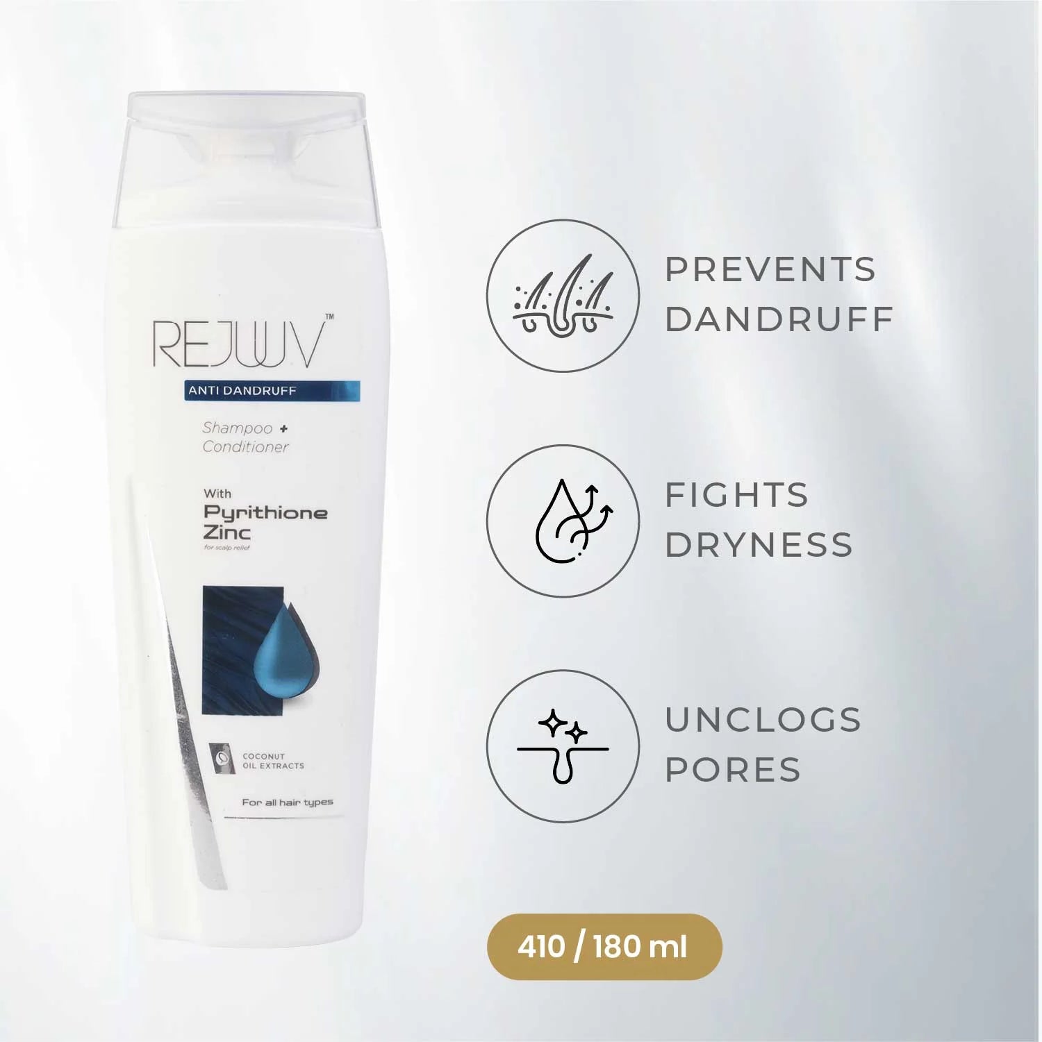 Rejuuv Enter the Dandruff Shampoo is a powerful blend of Pyrithione Zinc and the goodness of Coconut Oil, working in harmony to provide you with the ultimate dandruff-fighting and hair-protecting experience.
