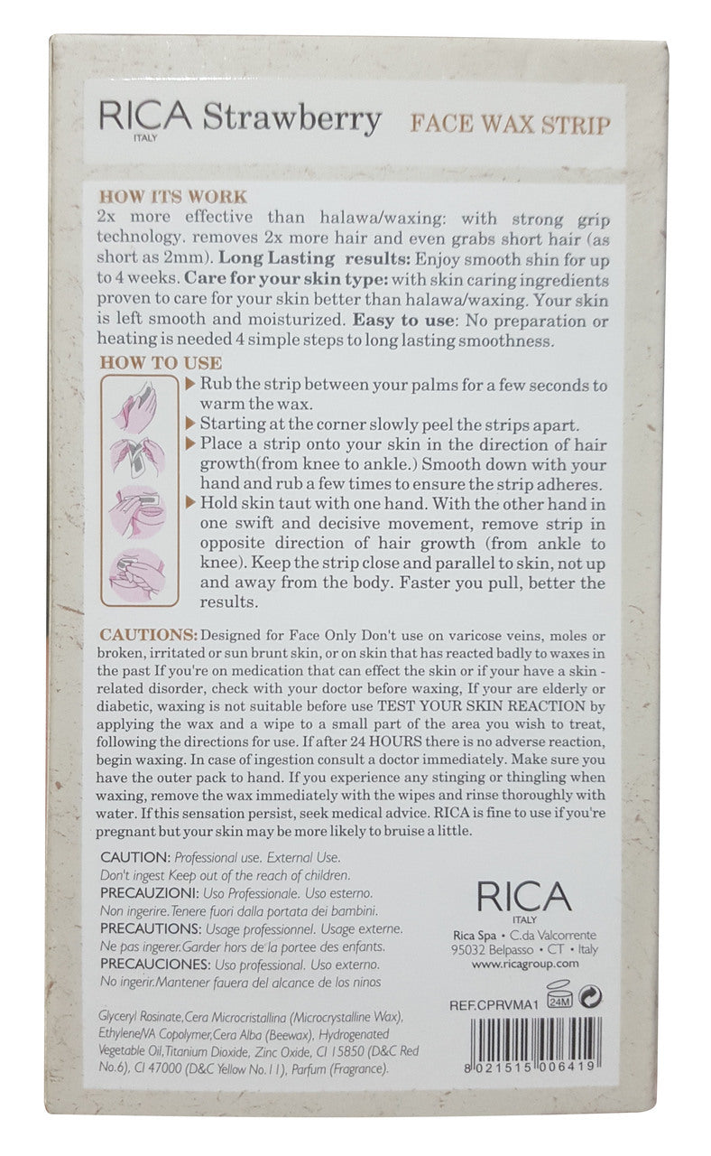 Rica Brazilian Face Wax Strip Strawberry 20 Strip