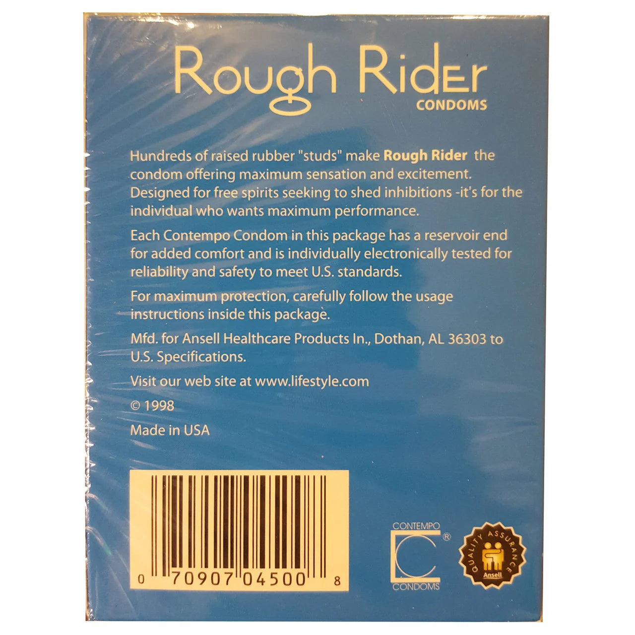 Rough Rider Studded condoms feature hundreds of raised studs to offer maximum sensation and excitement which adds increased pleasure to intimate encounters.