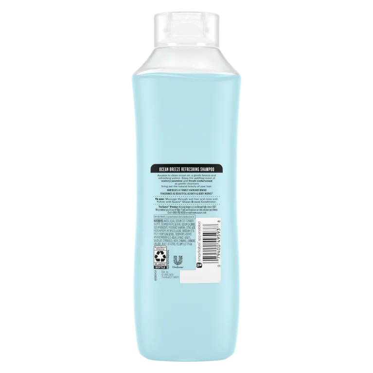 Delight in the refreshing breeze of Suave Essentials Ocean Breeze Shampoo. Infused with Sea Algae Extract and Vitamin E, this refreshing shampoo with its watery jasmine and fresh cedarwood scent is made to deeply cleanse and fortify your hair.